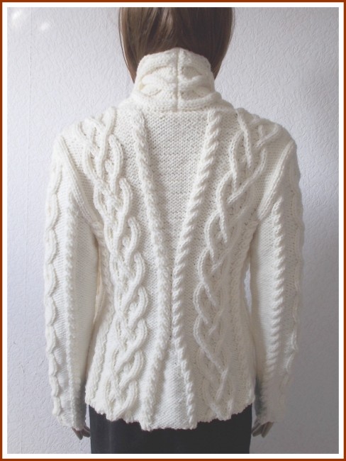 Modèle réalisé en taille M (tour de poitrine 87 à 96 cm - longueur manches 58 cm). Création personnelle.
